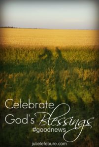 It’s a good news day because I am able to get out of bed, drink clean water, exercise even though I don’t want to, and go to work. My kids are happy and healthy, my grands are adorable, and my parents are still with me. I am loved beyond measure by our Father. Not much more I can ask for, right? 🙂 Great post, Julie!