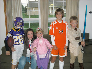 Ali didn’t dress up, but wore her new North Face hat, which I love. Zach was a soccer player (what a surprise!), Patrick was a Viking football player, Bennett was Luke Skywalker and Reagan was a balerina fairy.