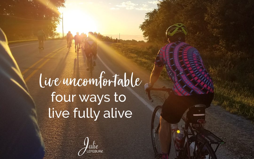 Uncomfortable. Painful, awkward, uneasy. We’re pondering ways to live fully alive. I shared four ways at our recent BYOB and B event, and I’m sharing them here individually. We’ve explored live authentic, live...