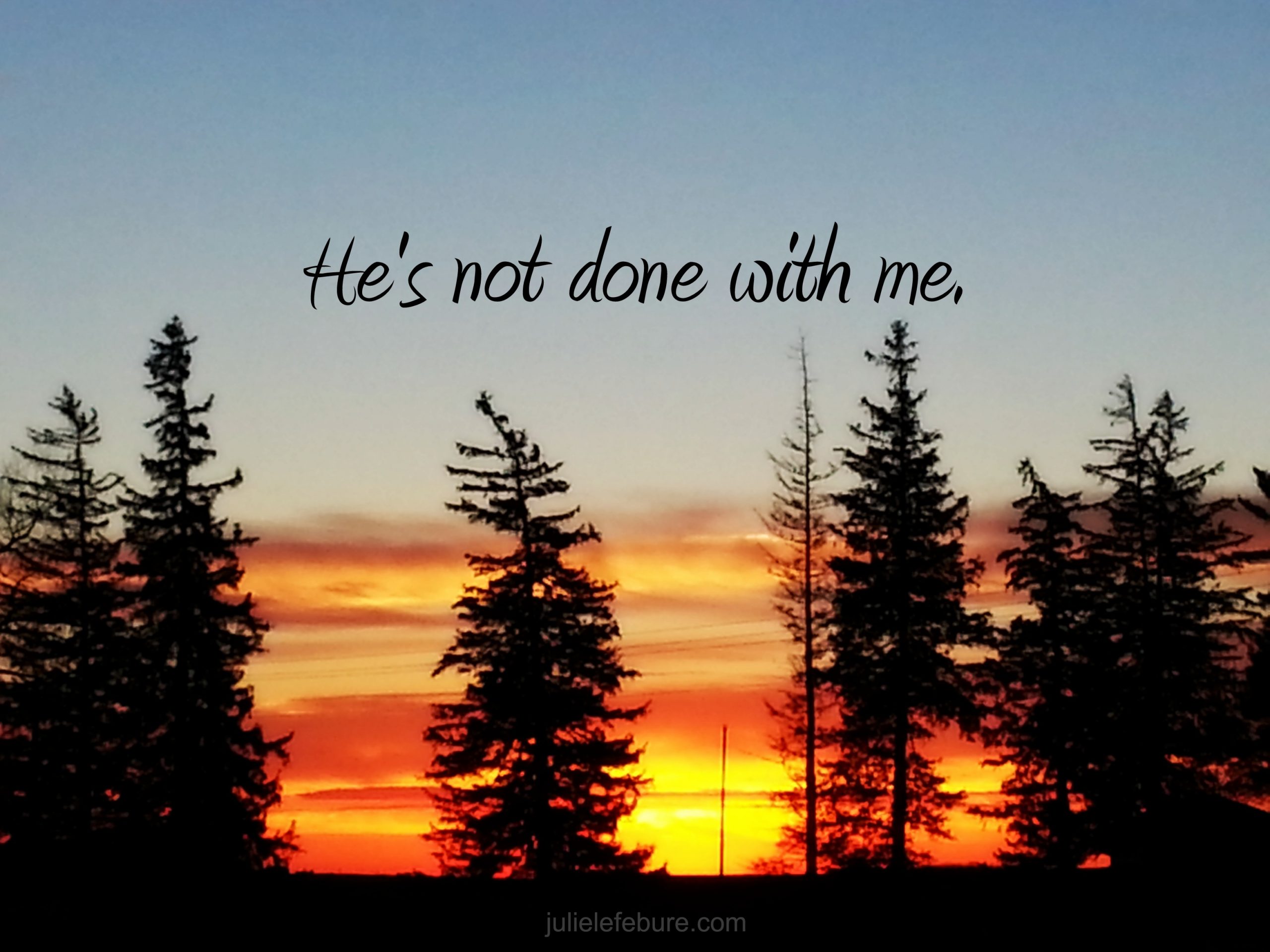 I continue to be reminded God can use anything He wants to teach and grow me. (That is becoming a lesson within itself.) And when He does, I am encouraged because no matter what the lesson or teaching moment is, I receive another reminder: He’s not done with me...