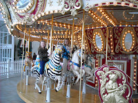 So Gabbieanne (Grace’s bear) and Freddy (Olivia’s frog) spent the rest of the day shopping with us! We made just a couple stops for me…I purchased some spring-colored bright pink nail polish, with the girls’ help of course, and found a couple birthday presents for Zach. We stopped for snacks and drinks at Target to rest our weary shopping bodies! 🙂 Our last stop was the carousel. The girls sure had fun on that! Their smiles were priceless!