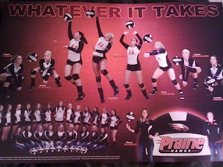 The Senior players are featured on the top half of the poster. Ali is just to the left of center, jumping up tall, hitting the ball, #17. She’s also with the team on the bottom left, second from the left sitting down. Did I mention I love this poster?! 🙂