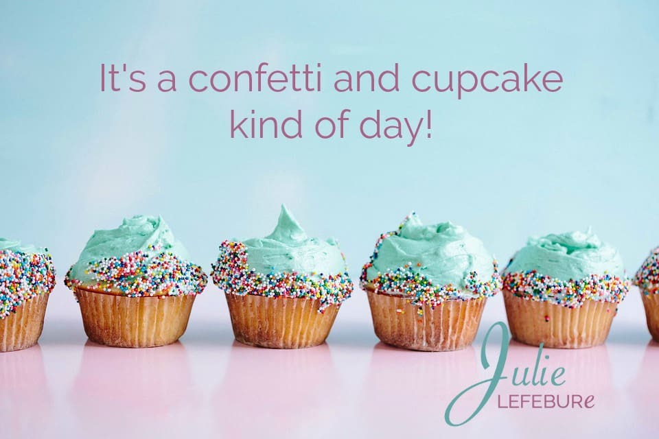 Why, you ask? Why confetti and cupcakes? Today is the “grand reveal” of my new site here at julielefebure.com! Thank you for stopping in for a few minutes to celebrate with me! (Keep reading… we have goodies below!)