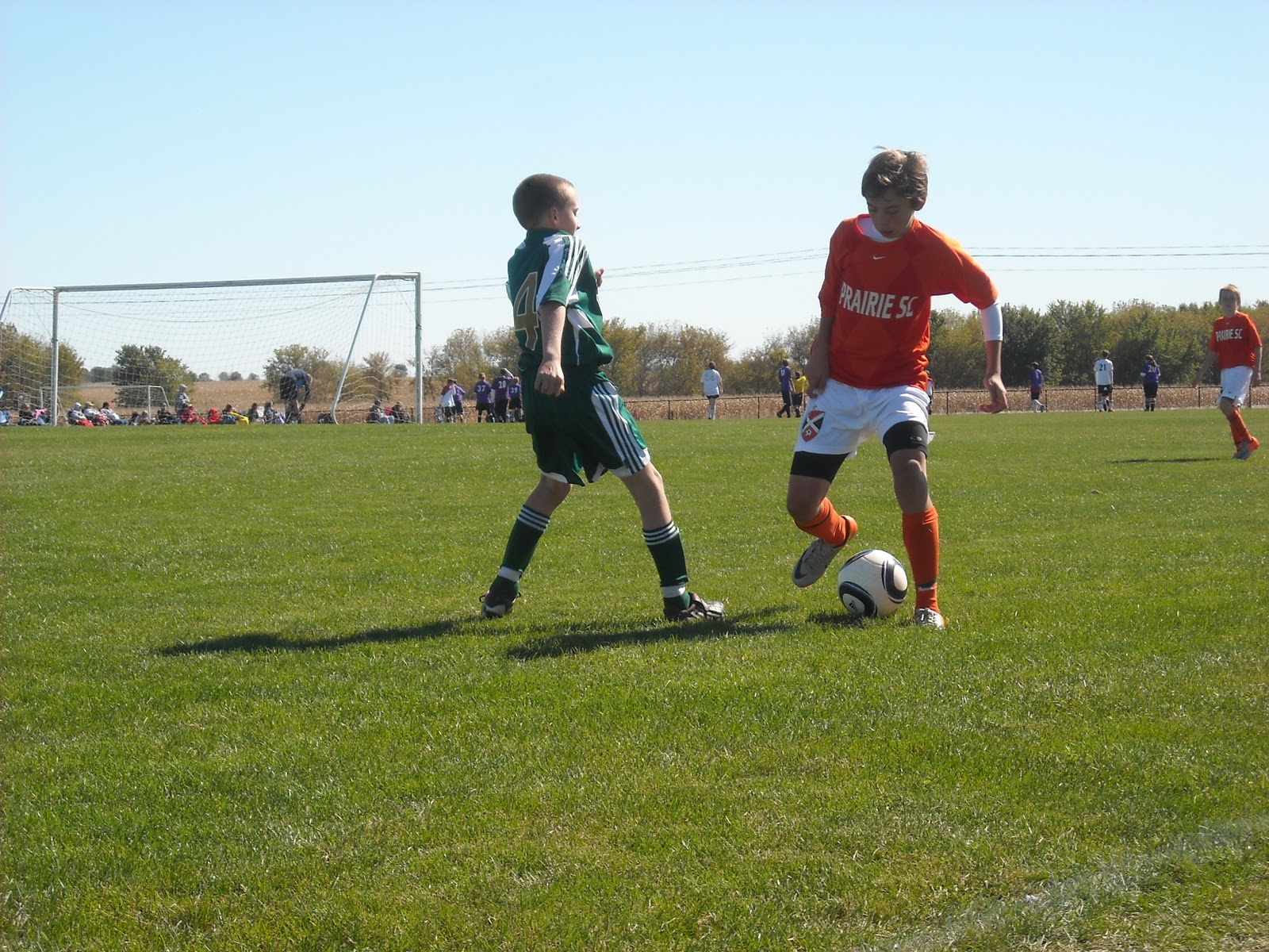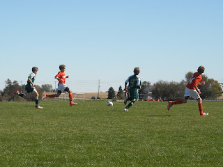 Zach moving the ball downfield in his game on Sunday (orange jersey)