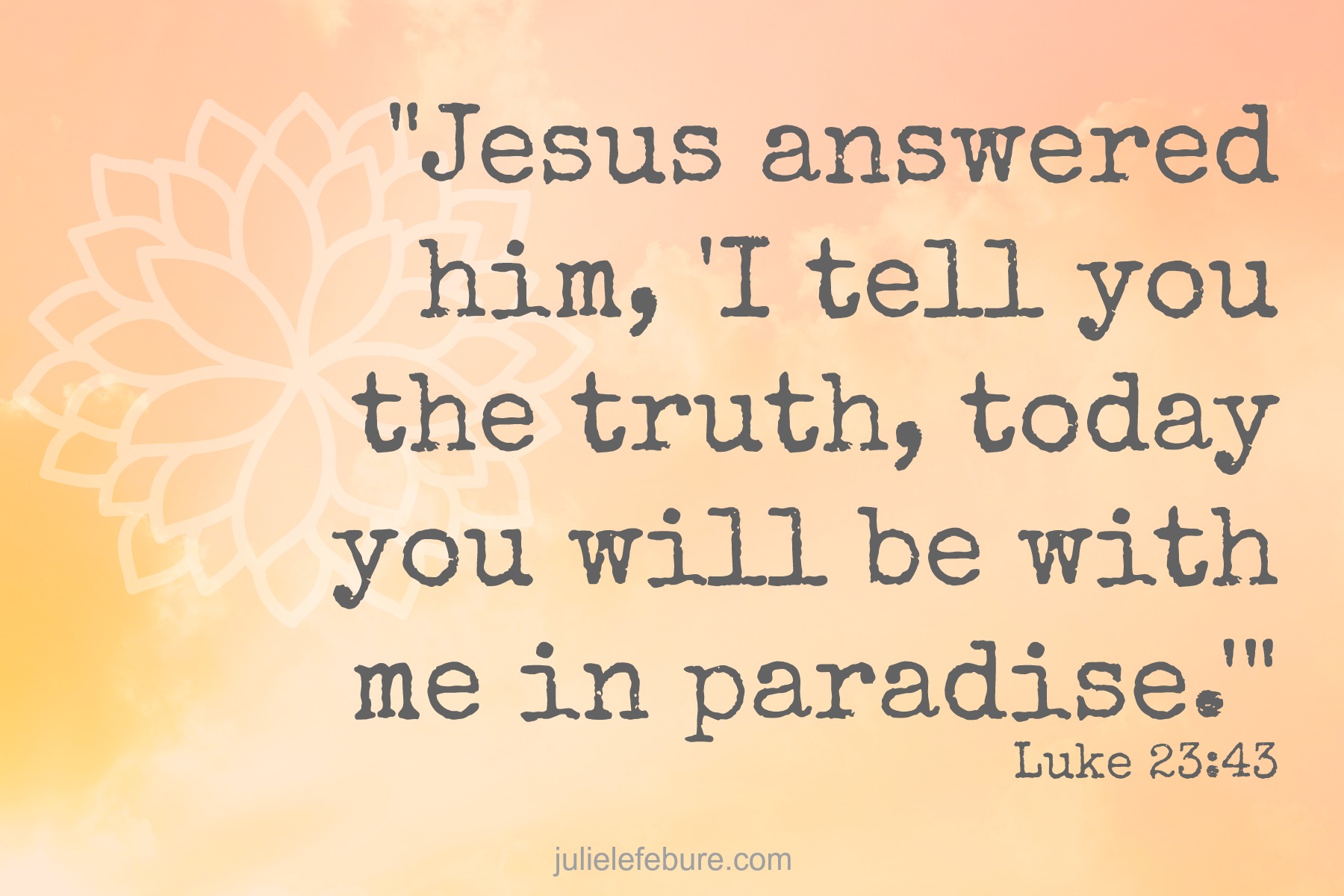 “Jesus answered him, ‘I tell you the truth, today you will be with me in paradise.'” Luke 23:43 Today Jill is in paradise with Jesus! She’s been there for a few days now. I can only imagine what she’s experiencing there. We celebrated...
